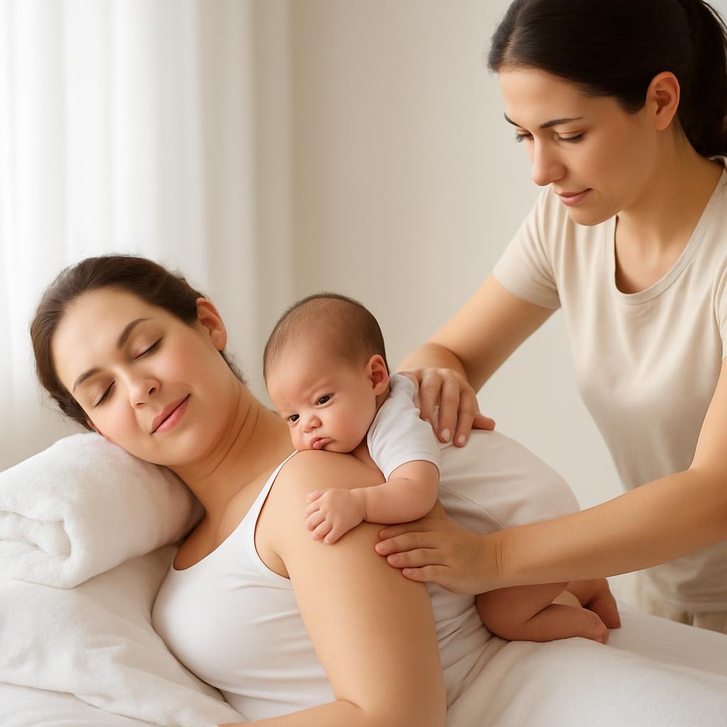 이곳은 **출산 후 엄마의 몸과 마음을 회복시키는 산후 마사지(Postnatal Massage)**에 관한